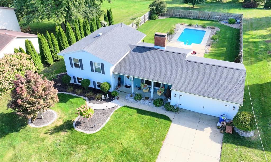 Beautiful well maintained 4 level split home in Lexington Schools. 4 Bedrooms, 2 full baths, and a two-sided fireplace shared between the living room and dining room. The vaulted ceiling accents the open living room. 14x24 Inground pool with newer pump and cover. Fenced back yard. Professionally landscaped.